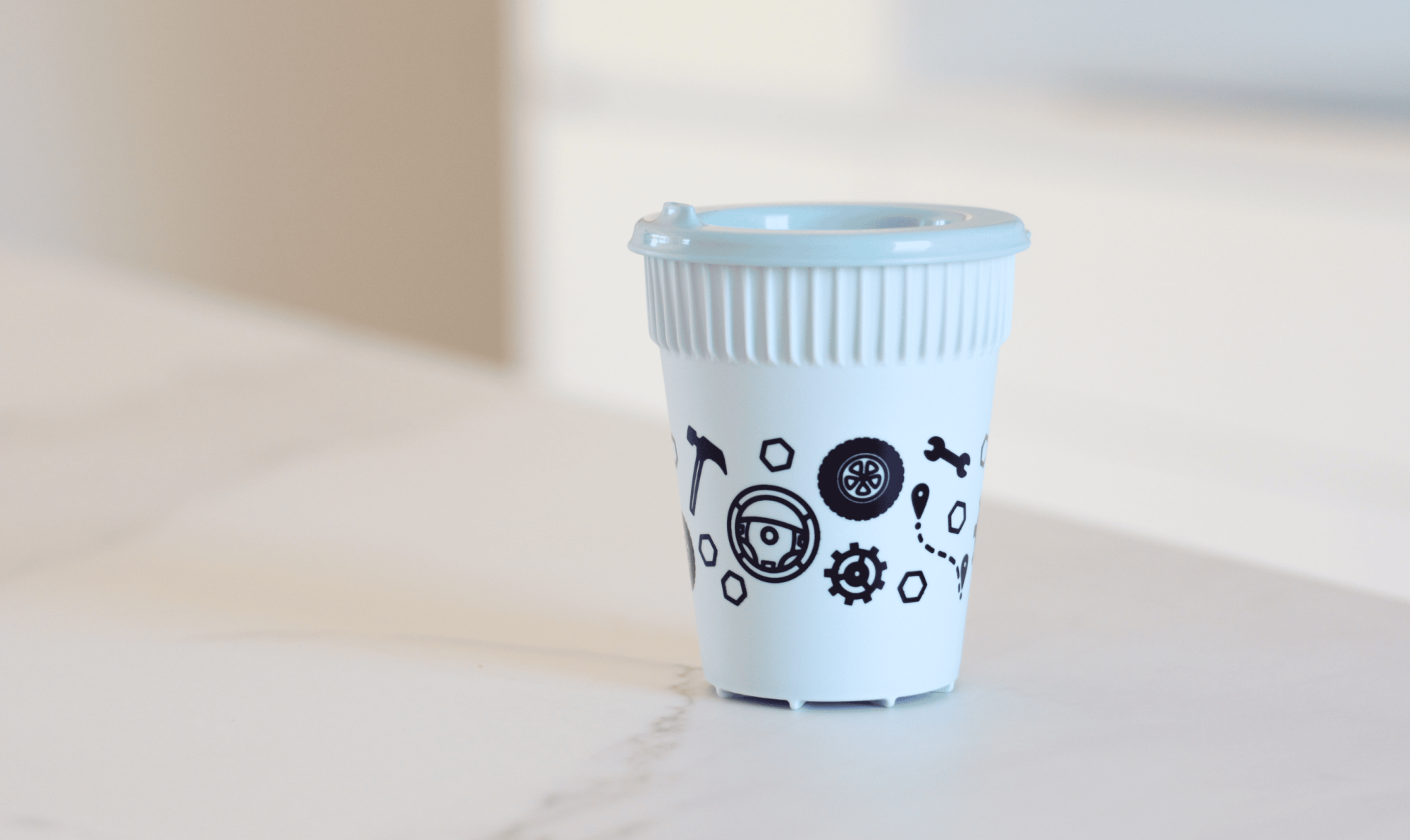 Celých 90 % našich zákaznic tvoří ženy – studentky, maminky i babičky. Ale často jsme slyšeli otázku: „A budete mít i kelímek pro muže?“ Tak jsme se do toho pustili a s radostí představujeme naši novinku – pánský kelímek Pro muže. Je světle modrý, elegantní, s černým minimalistickým potiskem ve stylu volantů, pneumatik a ozubených koleček a tak jako všechny motivy, i tento ilustrovala naše ilustrátorka Naty. Žádné květinky ani pastelky – prostě motiv, který si chlapi vezmou rádi do práce, auta nebo na cestu. A hlavně od teď už může "kelímkovat" celá rodina.